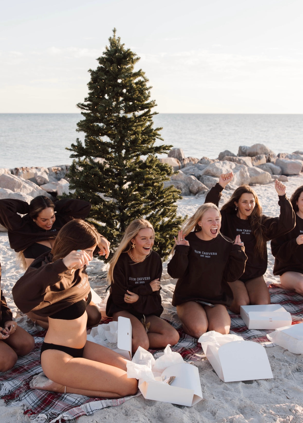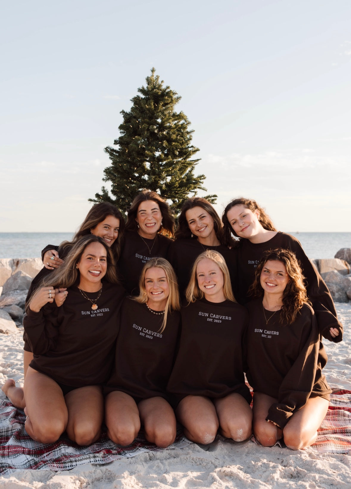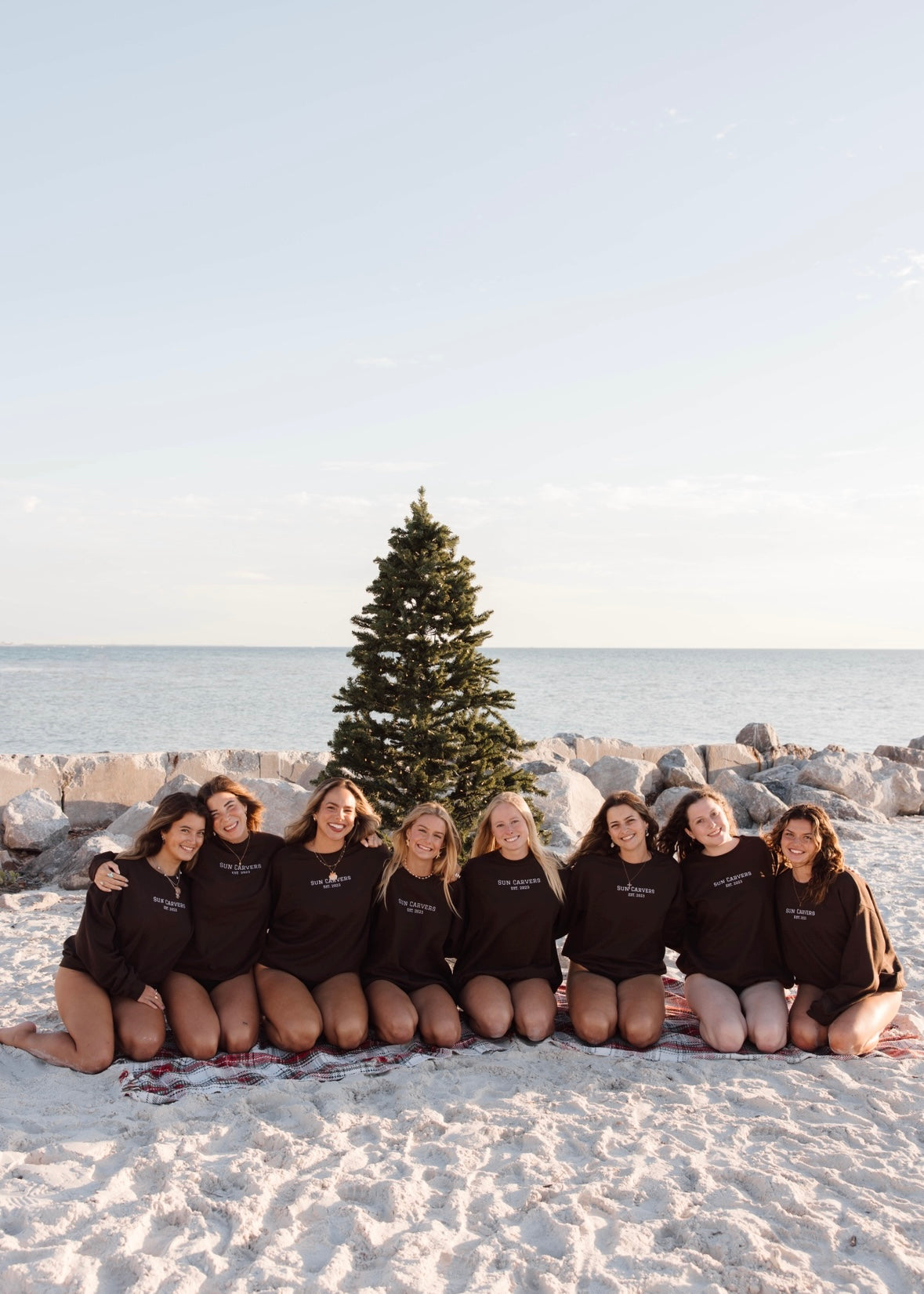 Fall time is here with our new choclate brown and white embroidered crew necks! Made with the cozy beach bonfire nights in mind. For the extra cozy oversized feel size up one or two sizes.